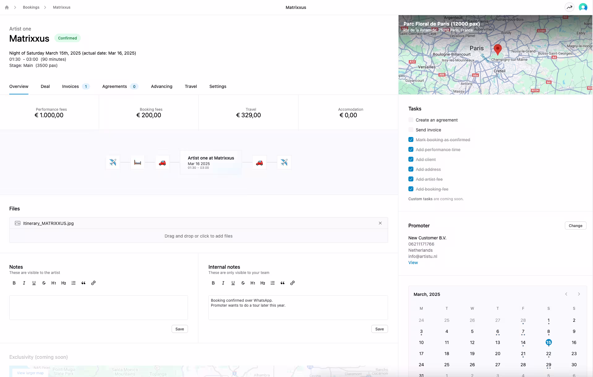 Nous avons entièrement repensé la page des détails des bookings dans Artistu pour vous offrir un moyen plus clair, plus rapide et plus puissant de gérer vos bookings. Cette mise à jour a pour but de vous aider à vous concentrer sur l'essentiel, avec moins de clics et plus d'efficacité.