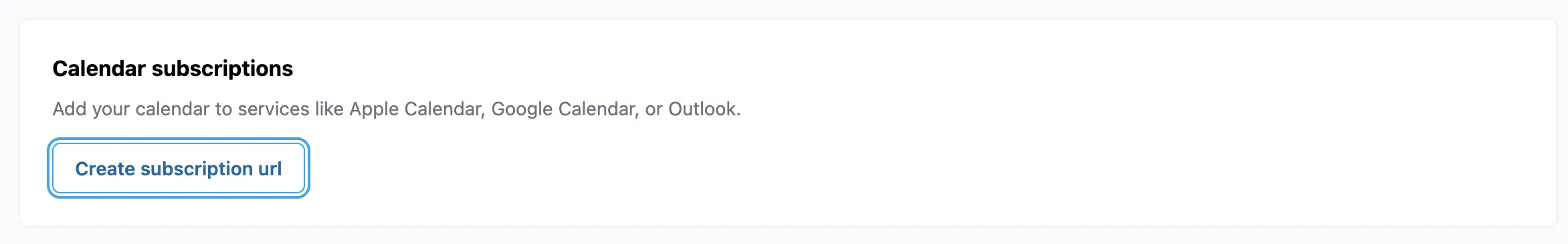 Allez sur votre page Paramètres (Settings) et faites défiler jusqu'en bas pour trouver la section Abonnements au calendrier (Calendar subscriptions). Cliquez sur Create subscription (Créer un abonnement).