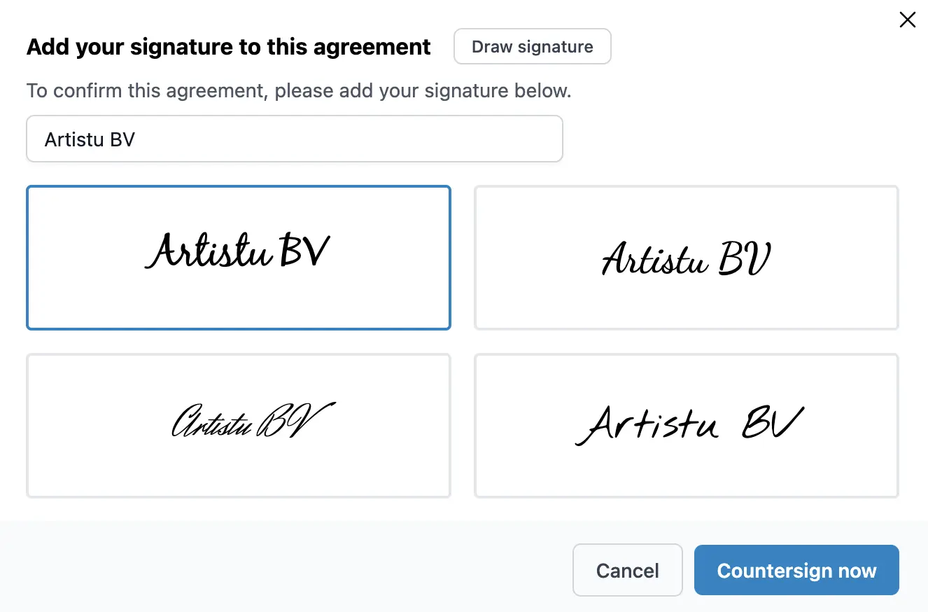 Vous pouvez maintenant relire le contrat signé et ajouter votre propre contresignature directement depuis le tableau de bord.